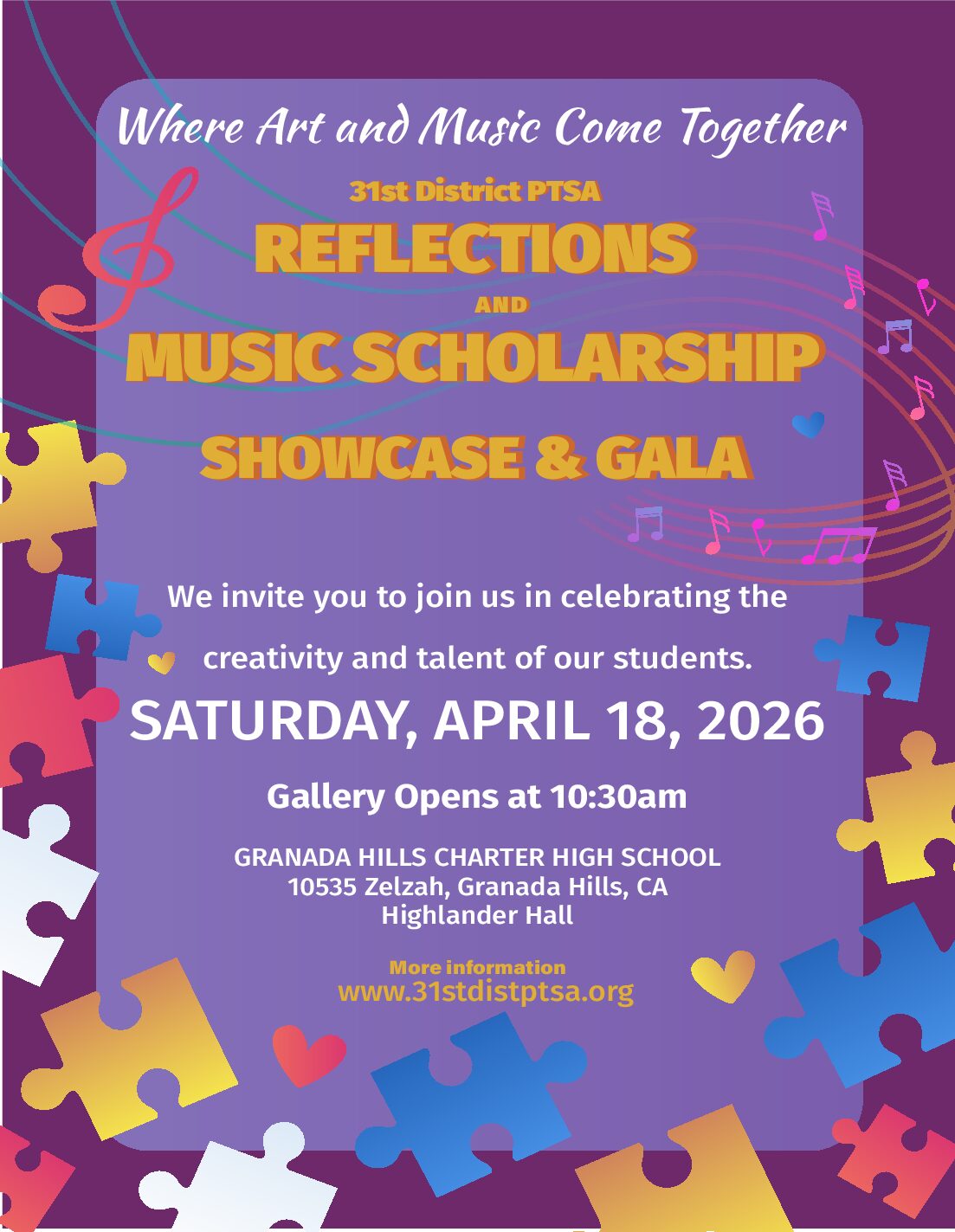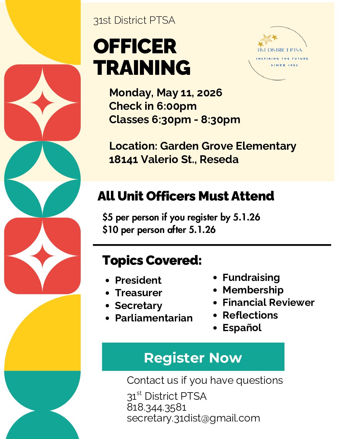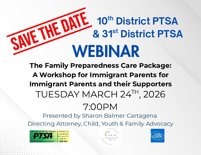 The 31st District PTSA serves 6 councils and over 110 PTA/PTSA units in the San Fernando Valley, Sunland and Tujunga area. We are one of the 29 PTA Districts that make up the California State PTA. Since it’s inception in 1953, the focus of the 31st District PTSA has always been to promote the education, health and safety of children, youth and families.
