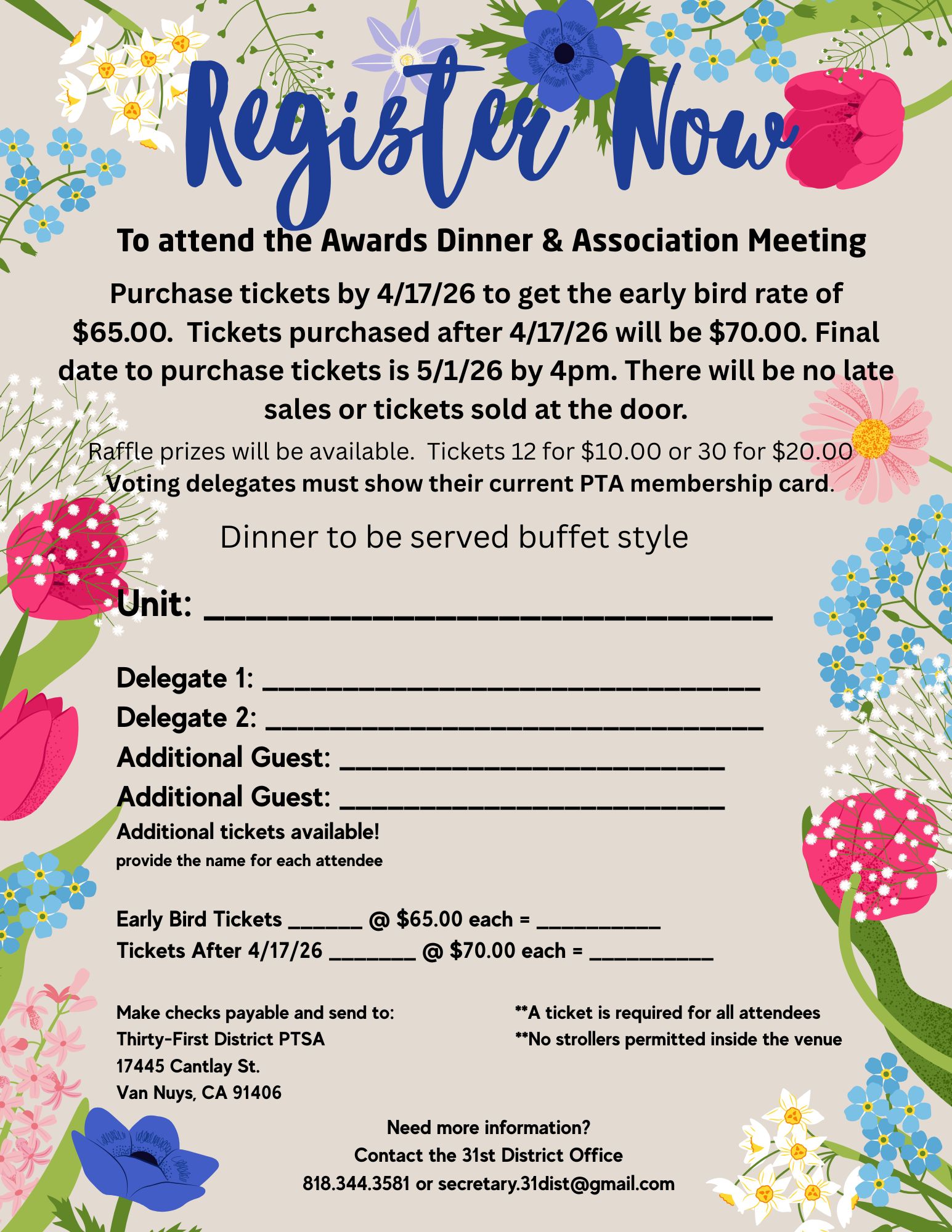Please come out and support our Awards Dinner! This year’s garden themed celebration will be a wonderful opportunity for us to come together to connect, and honor the outstanding accomplishments and dedication of our incredible officers.